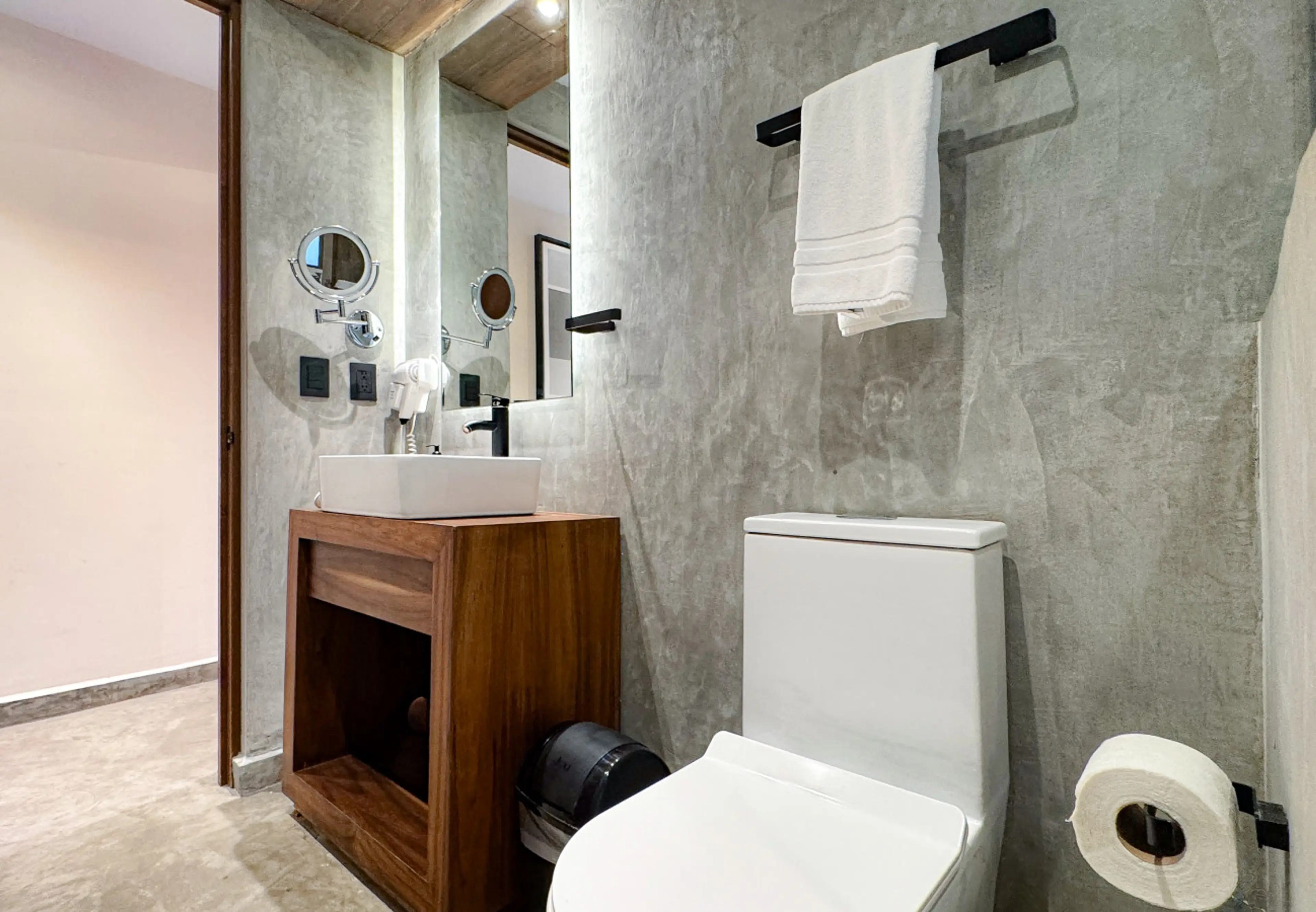 ¡Bienvenido al paraíso! Lujoso y comodo apartamento donde contarás con cocina completa, 1 cama matrimonial, sofá cama, TV, A/C y terraza con una vista impresionante a la selva de Tulum. Estarás a solo 1 kilometro de la playa, ofrecemos desayuno con precios preferenciales con acceso a club de pla...